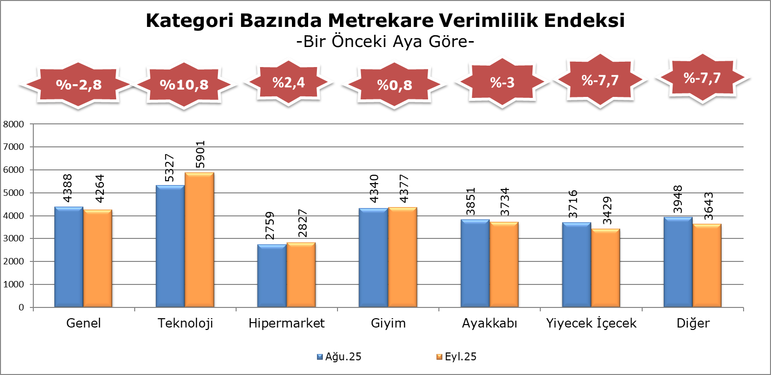 Alışveriş Merkezleri ve Yatırımcıları Derneği (AYD) ile Akademetre Research tarafından ortaklaşa oluşturulan AVM Endeksi’nin Eylül ayı sonuçları açıklandı. Her ay düzenli olarak yayınlanan verilere göre ciro endeksi, Eylül 2025 döneminde, bir önceki yılın aynı ayı ile karşılaştırıldığında ve enflasyondan arındırılmamış olarak incelendiğinde yüzde 26,5 oranında artarak 4264 puana yükseldi. Ancak, Eylül 2025 için açıklanan yıllık enflasyon oranının %33,29 olduğu dikkate alındığında, metrekare verimlilik endeksindeki artışın enflasyonun altında kaldığı görülüyor. Bu durum, reel anlamda AVM cirolarında sınırlı bir daralmaya işaret ediyor. Bir önceki aya göre değerlendirildiğinde, AVM metrekare verimliliği %2,8 oranında daralma gösterdi. Kategoriler bazında incelendiğinde, teknoloji kategorisinde %10,8 oranında artış yaşanırken, yiyecek-içecek kategorisinde %7,7 oranında düşüş kaydedildi. Bu veriler, tüketicinin özellikle gıda dışı harcamalarda teknolojiye öncelik verdiğini, ancak artan yaşam maliyetleri nedeniyle yeme-içme harcamalarını kısmaya yöneldiğini gösteriyor.